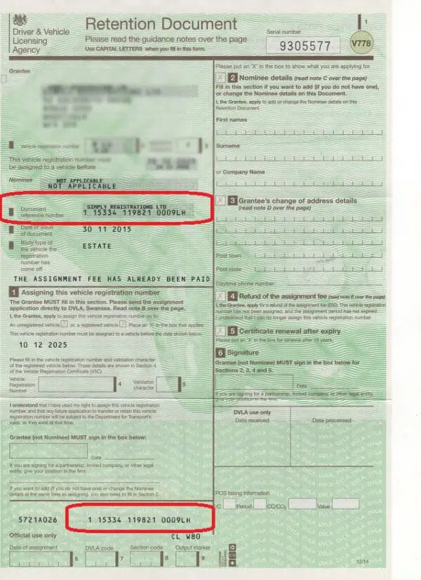 - a number plate authorisation certificate (V948) with an official stamp from the Driver and Vehicle Licensing Agency (DVLA)